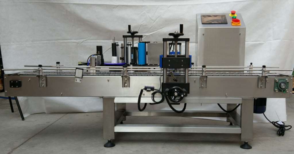 貼標(biāo)機(jī)是采用不干膠卷筒貼標(biāo)紙,適合各種大桶類貼標(biāo)的產(chǎn)品。操作簡(jiǎn)單。貼標(biāo)采用刷標(biāo)貼標(biāo)方式,一次完成放瓶、貼標(biāo),還可選配色帶打碼機(jī)同步完成標(biāo)簽生產(chǎn)日期打印,本機(jī)采用PLC控制,同步追蹤,出標(biāo)由步進(jìn)電機(jī)控制,確保出標(biāo)速度與卷瓶速度同步的自動(dòng)化包裝機(jī)械。是現(xiàn)代的機(jī)電一體化產(chǎn)品,具有優(yōu)良和可靠的工作性能。不干膠貼標(biāo)機(jī)具有清潔衛(wèi)生、不發(fā)霉,貼標(biāo)后美觀、牢固、不會(huì)自行脫落,生產(chǎn)效率高等優(yōu)點(diǎn)。