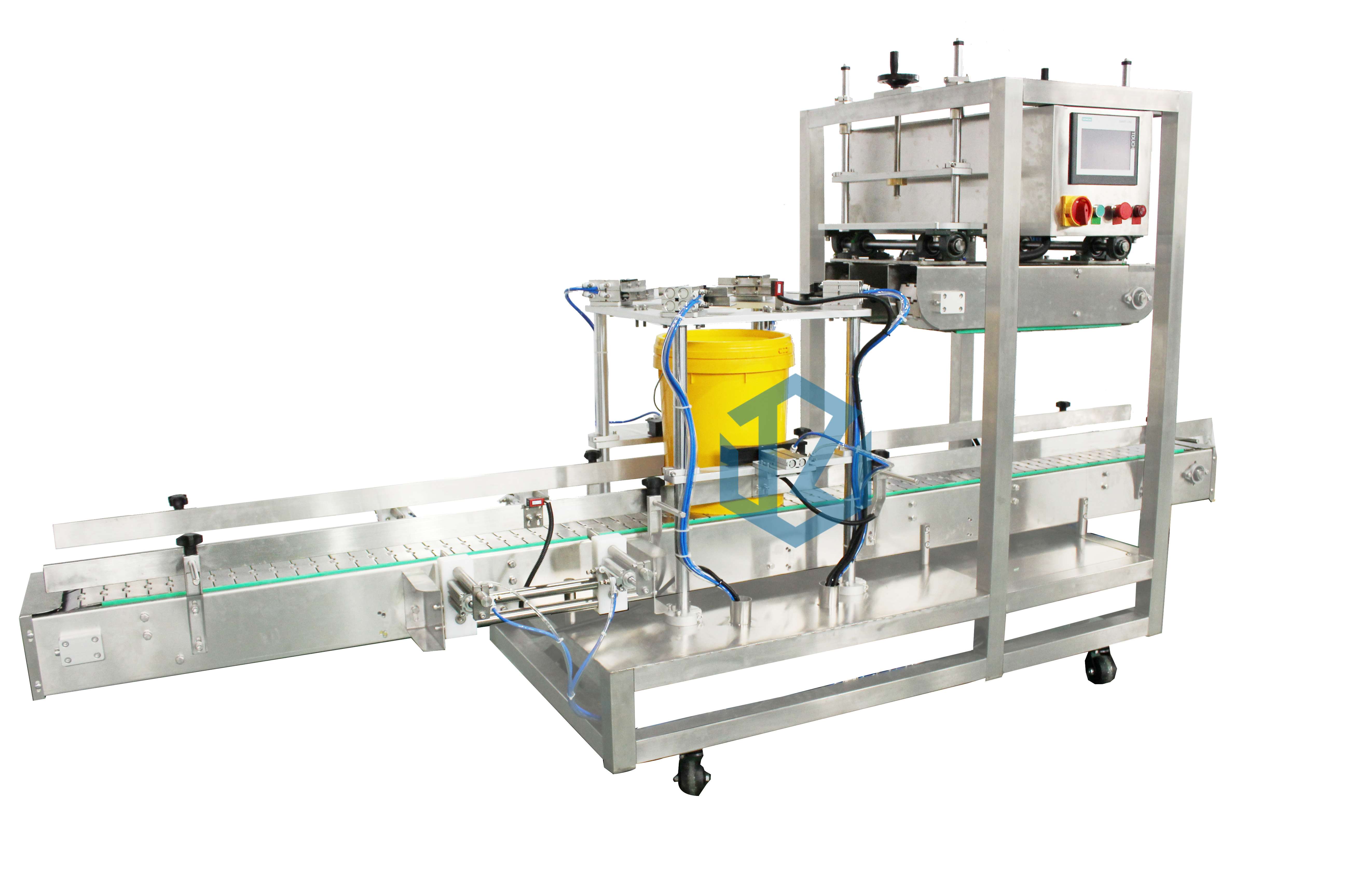 產(chǎn)品介紹:適合各種需要壓蓋的圓桶,自動落蓋-自動壓蓋。